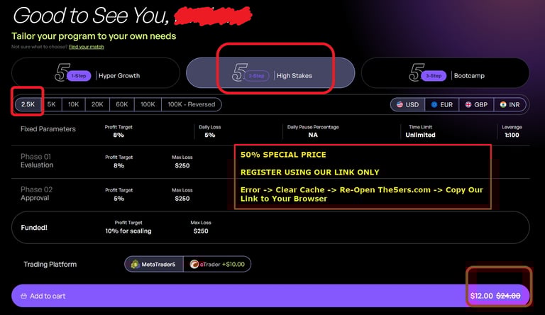 First Timer - Register Only Using Our Link - Broker link ( Clear Cache -> Open the5ers.com -> Copy our link )